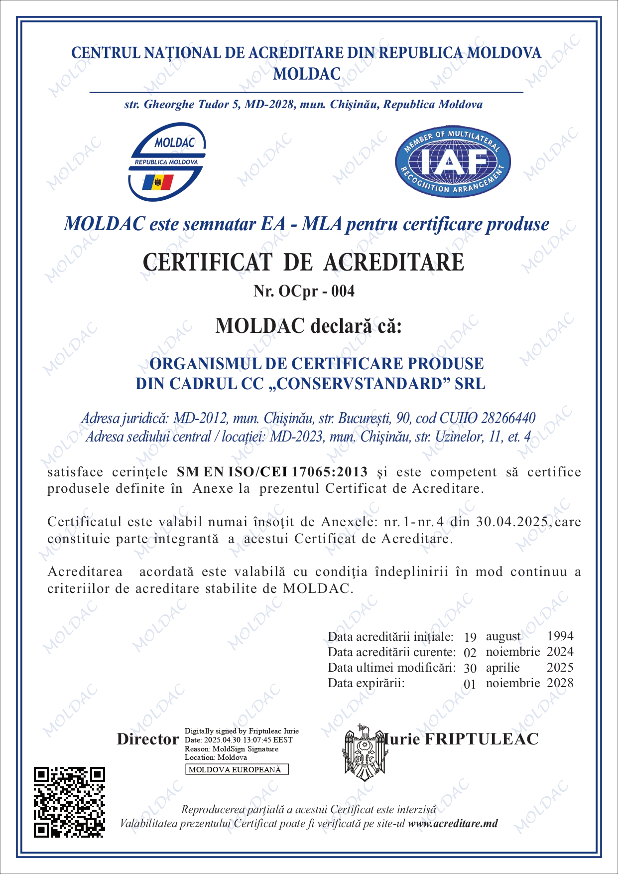 OC ”Conservstandard” tinde să se mențină și în continuare ca unul din cele mai solicitate și atrăgătoare pentru clienți Organisme de certificare în domeniul produselor alimentare.
